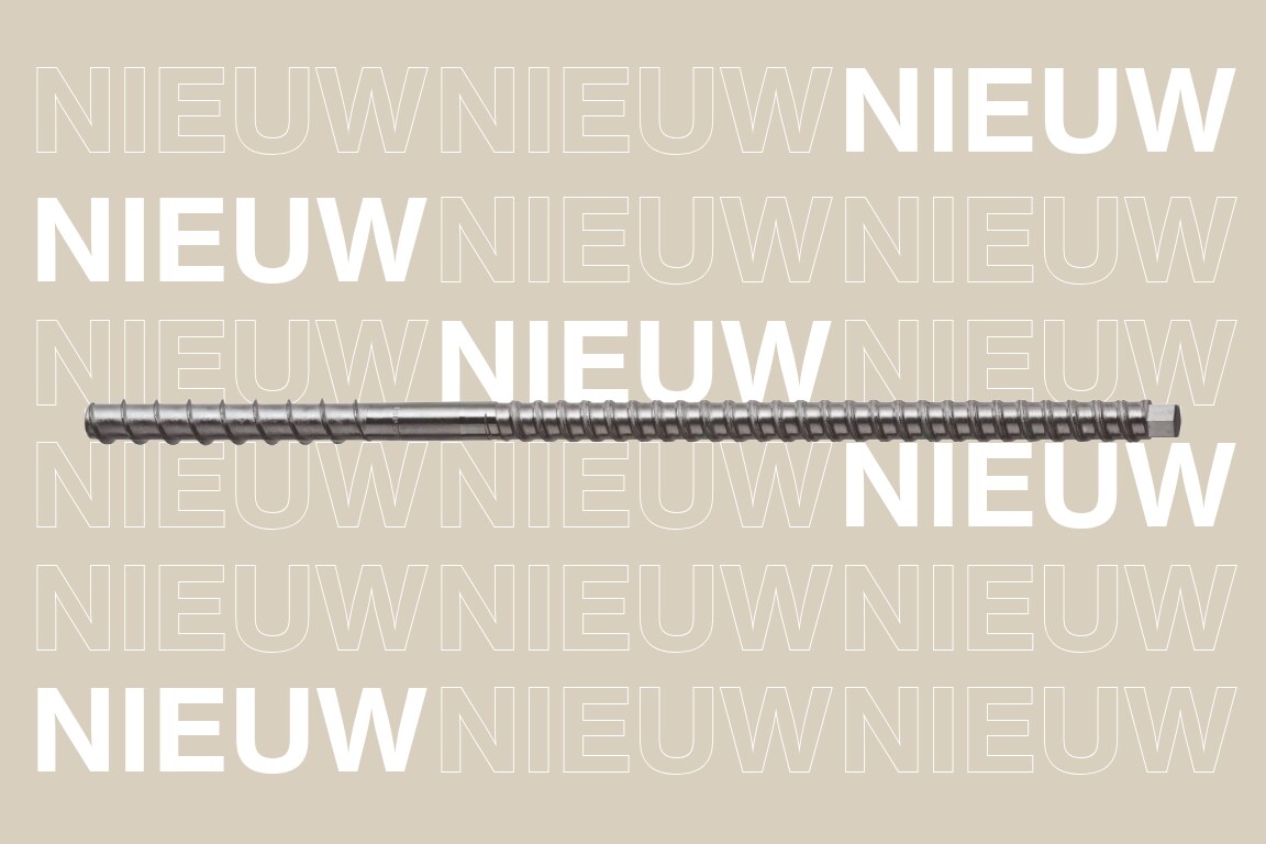 Hoogwaardig schroefanker met extern gedraaide trekstangkoppeling voor bevestiging in beton.